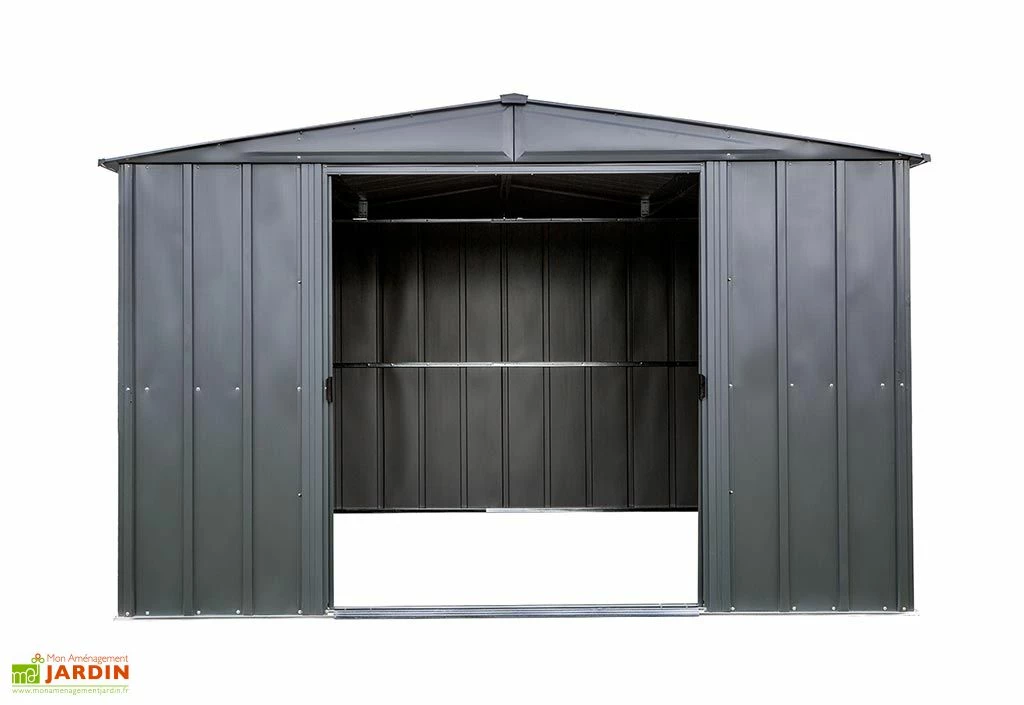 Proposé dans une finition gris anthracite, cet abri de jardin en métal est fabriqué à partir de tôle d’acier galvanisé de 0,3 mm d’épaisseur. Très solide, ce matériau est également insensible à la corrosion et résistant aux intempéries, le tout sans nécessiter de traitement ou d’entretien. Sa toiture à deux pans est elle aussi conçue en acier galvanisé et pourra supporter une charge maximale de 100 kg/m², notamment en cas de chutes de neige. Livrée en kit, cette cabane de jardin devra être montée par vos soins.