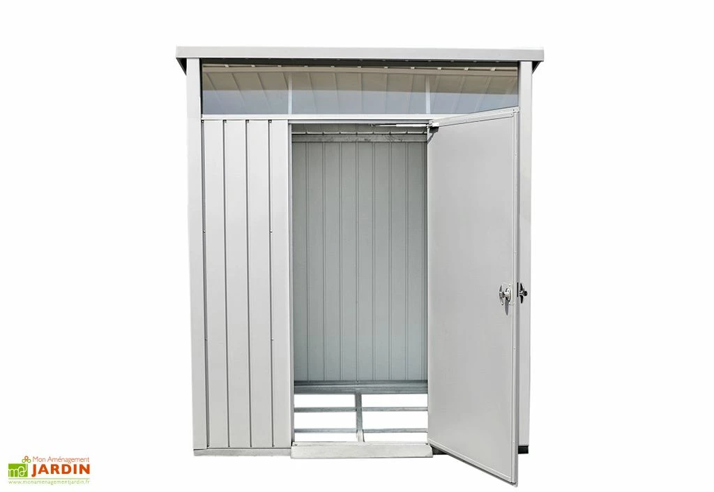 La porte battante comprend un vérin à gaz qui permet d’en amortir l’ouverture et la fermeture. Pour plus de solidité, elle est renforcée et doublée, avec une épaisseur de 33 mm. L’abri est sécurisé par la présence d’une serrure cylindre et de 2 clés.