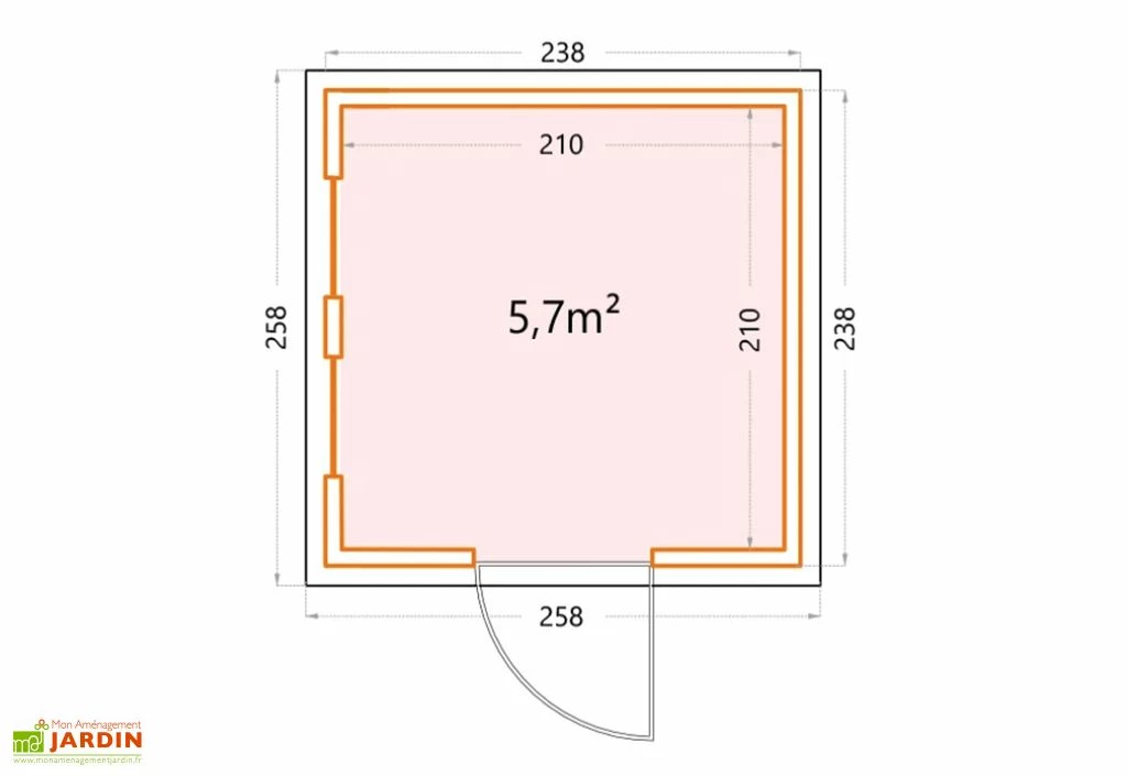 - 238 x 238 x 219 cm (dimensions extérieures)
