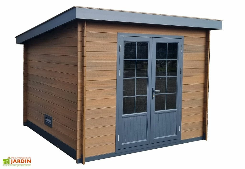 Cet abri de jardin de la marque Green Outside vous offre un grand espace de rangement de 10 m² qui s’intégrera dans n’importe quel jardin grâce à son look moderne et à son coloris imitation bois. Le cabanon dispose d’une structure en aluminium et les parois sont fabriquées en bois composite. L’abri de jardin ne nécessite pas de produits de traitement nocifs, ni de peinture et de lasure, un simple entretien à l’eau savonneuse suffit.