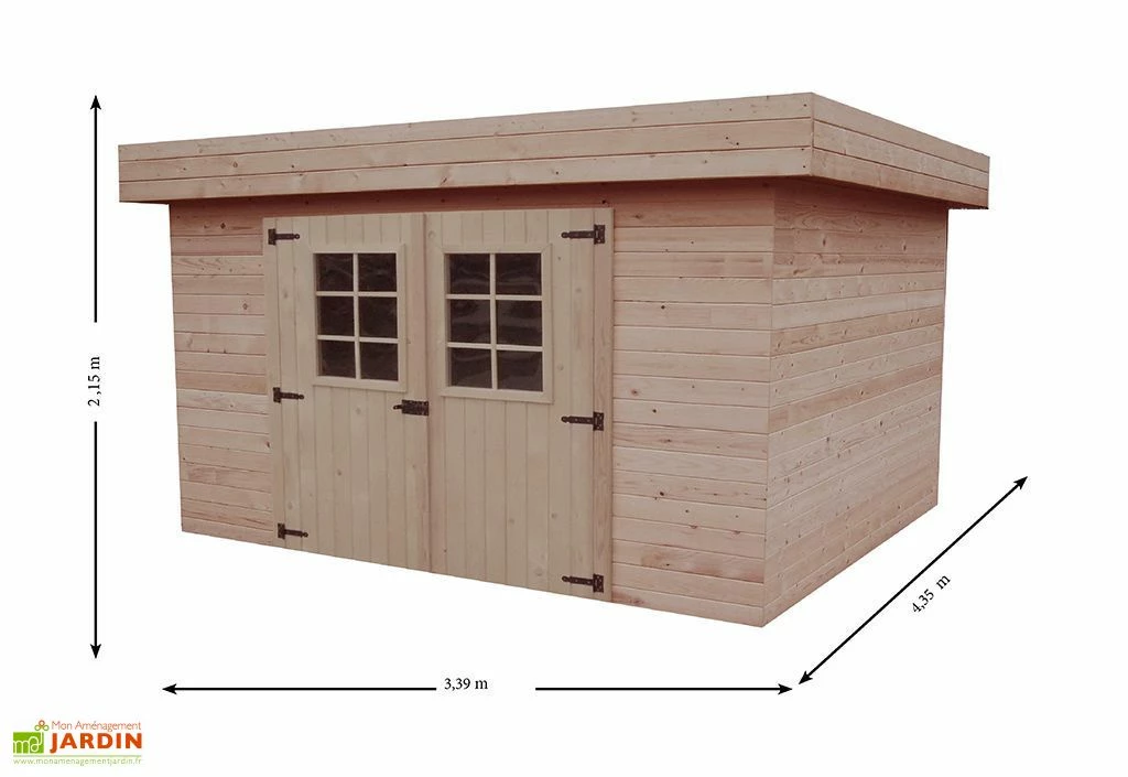 Cet abri de jardin offre un espace intérieur de 11,38 m², ce qui est idéal pour ranger des outils, du matériel de jardinage, des vélos ou tout autre équipement d’extérieur. Une fois monté, il occupera une surface de 14,75 m² dans votre jardin. Notez qu’il n’est cependant pas traité contre les menaces que représentent l’humidité, les insectes ou encore les champignons. Vous devrez donc appliquer une lasure et un traitement fongicide à l’intérieur et à l’extérieur de l’abri juste avant son installation.