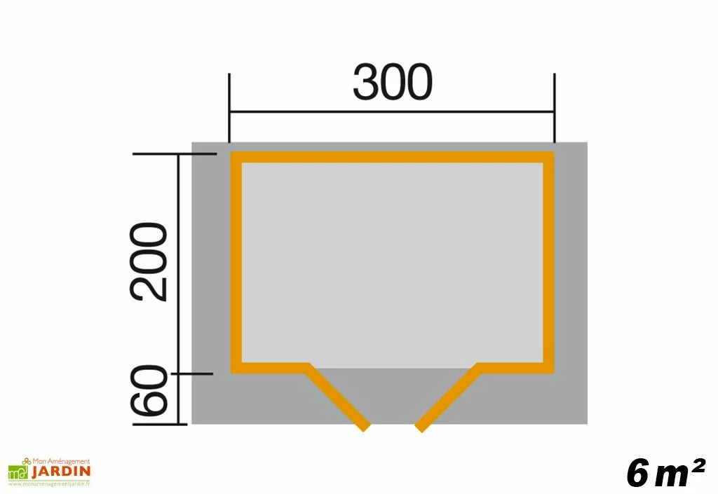 - Surface à couvrir pour l’abri de 6 m² : 10,8 m²
