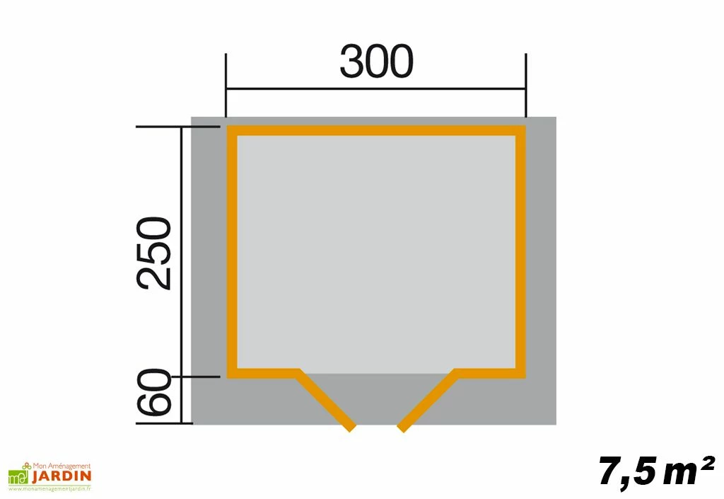 - Surface à couvrir pour l’abri de 7,5 m² : 12,8 m²