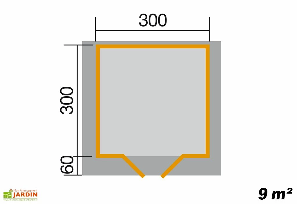 - Surface à couvrir pour l’abri de 9 m² : 14,8 m²