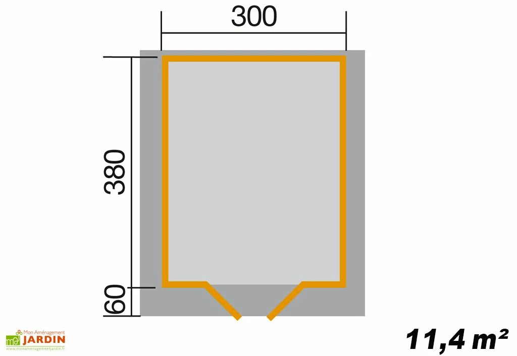 - Surface à couvrir pour l’abri de 11,4 m² : 18 m²