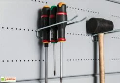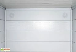 Avec des dimensions extérieures de 2,08 x 2,08 m, ce cabanon de jardin occupera une surface de 4,3 m² une fois installé. Son espace intérieur de 3,2 m² vous permettra de ranger vos équipements d’extérieur, du matériel de jardinage ou des outils, par exemple, à l’abri des intempéries. Les parois de 0,9 mm d’épaisseur intègrent des aérations afin d’assurer la bonne ventilation de l’intérieur de la remise et un plancher est de plus proposé dans l’onglet « Accessoires » afin de mieux protéger le contenu de l’abri des remontées d’humidité ou d’un sol boueux.