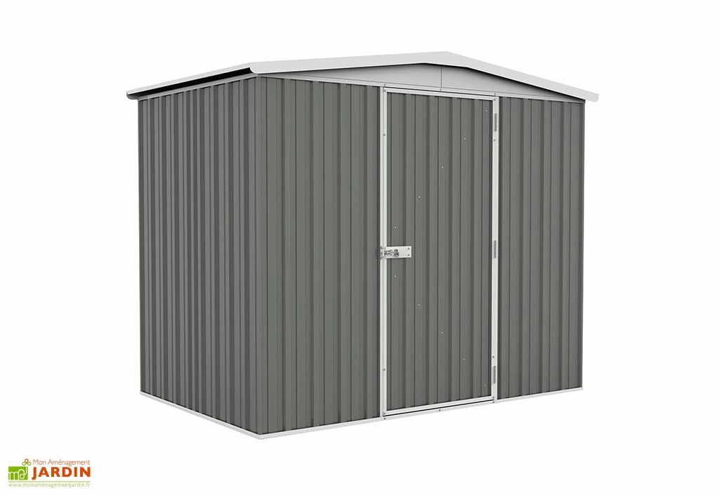 Votre matériel sera bien en sécurité puisque l’abri en métal est équipé d’une porte avec un loquet de verrouillage. Il dispose d’un toit en double pente afin de drainer plus facilement l’eau de pluie, et la remise de jardin possède aussi une grande résistance au vent jusque 147 km/h grâce à ses panneaux de 0,35 mm d’épaisseur.