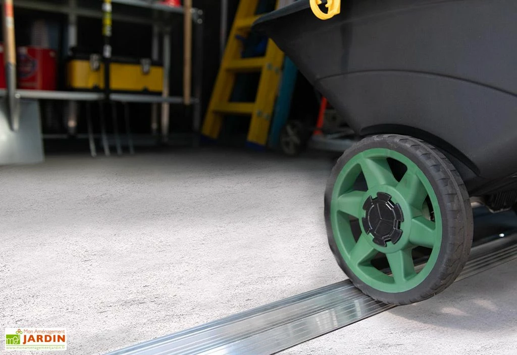 La double porte dispose d’un seuil bas pour entrer et sortir facilement de l’abri même avec une tondeuse ou un équipement encombrant.