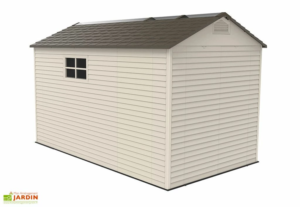 L’abri de jardin en PVC est équipé d’une charpente en acier inoxydable, triangulée en A. Ses panneaux en HDPE mesurent 23 mm d’épaisseur. Le choix des matériaux offrent une excellente résistance à l’abri face aux conditions climatiques : il ne moisit pas, il ne rouille pas et il ne craint pas les insectes. Il est également parfaitement adapté pour une utilisation en bord de mer ou à la montagne. L’abri ne demande aucun entretien.