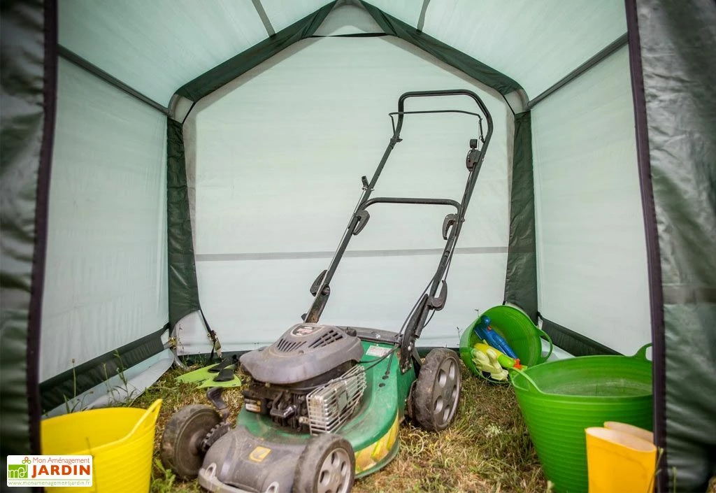 L’abri de jardin en toile de chez Habrita permet de stocker votre matériel tout en le protégeant. Il peut accueillir une tondeuse, des outils emmanchés, des vélos, une moto ou encore des sacs à charbon de bois, des pellets, du bois de chauffage, etc.