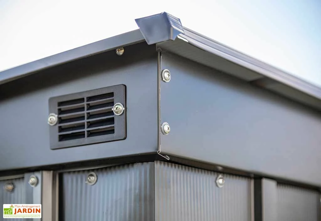 Robuste et fiable, cette armoire de rangement d’extérieur est conçue à partir de tôle d’acier galvanisé de 0,3 mm d’épaisseur, parois comme toiture. Très solide, ce matériau ne craint ni la corrosion, ni les intempéries, et ce sans nécessiter de traitement ou d’entretien particulier. Sa finition anthracite lui permettra par ailleurs de s’intégrer plus aisément dans votre extérieur.