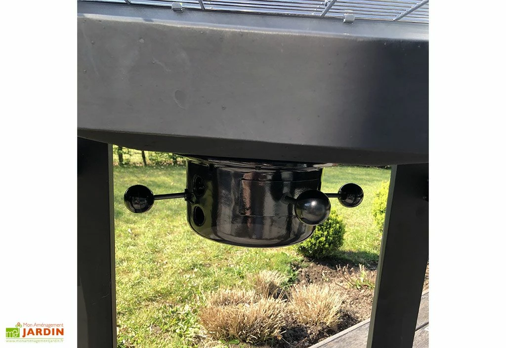 Le barbecue à charbon de bois est en acier et sa cuve est en fonte. La grille de cuisson est en acier chromé, elle ne craint pas l’usure et l’oxydation. Le barbecue se monte facilement et en 10 minutes grâce à son système clipsable.