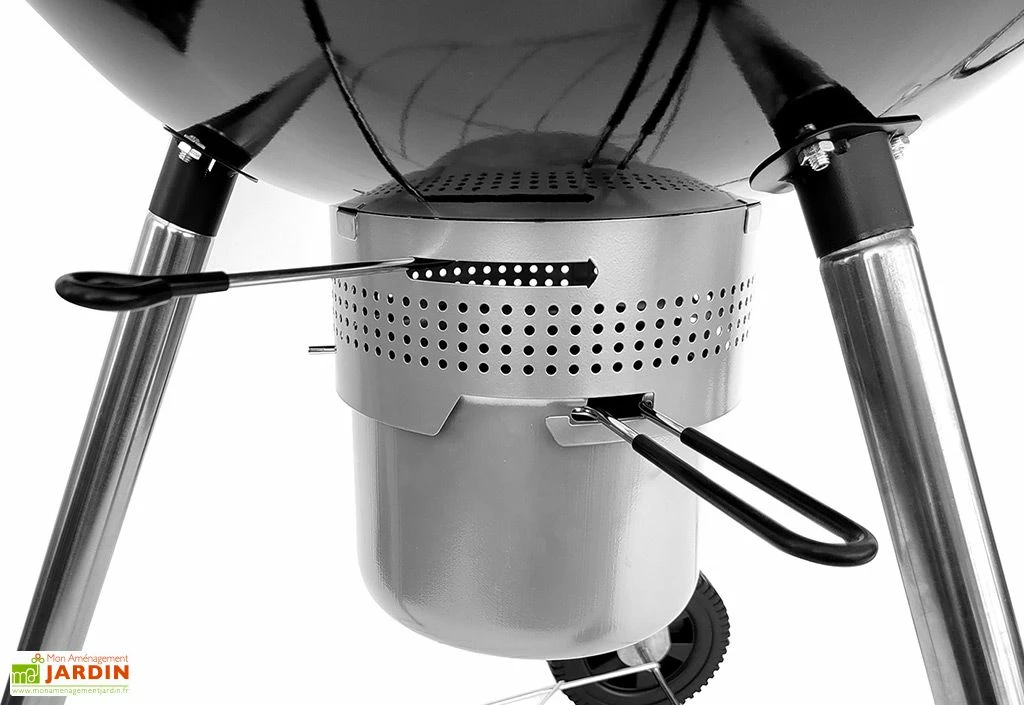 Ce barbecue au charbon est doté d’un séparateur de braises grâce auquel vous pourrez réaliser des cuissons indirectes et son couvercle intègre un thermomètre qui facilitera la gestion de vos cuissons. Vous pourrez bien entendu régler le tirage, pour des conditions d’utilisation optimales. A noter également, la présence d’un support latéral « Slide-in » qui pourra accueillir le couvercle du barbecue, vous permettant ainsi d’avoir les mains libres pour cuisiner plus facilement.