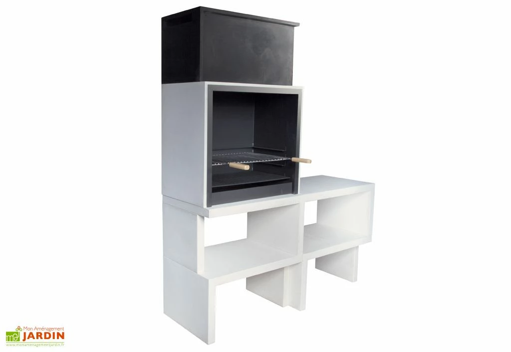 Ce barbecue design signé Blive est à la fois moderne, élégant et extrêmement résistant. Il est en effet conçu en béton fibré, ce qui lui permet de ne craindre ni les chocs, ni les intempéries, et ce sans exiger d’entretien particulier. Le béton utilisé est également hydrofuge, ce qui permet d’éviter les fissures causées par l’infiltration des eaux pluviales. Livré en kit, ce barbecue de jardin est composé de divers modules à assembler soi-même, et des tiroirs en métal sont disponibles en option. Ces derniers vous permettront de ranger vos ustensiles de cuisine ou d’avoir votre charbon de bois toujours à portée de main.