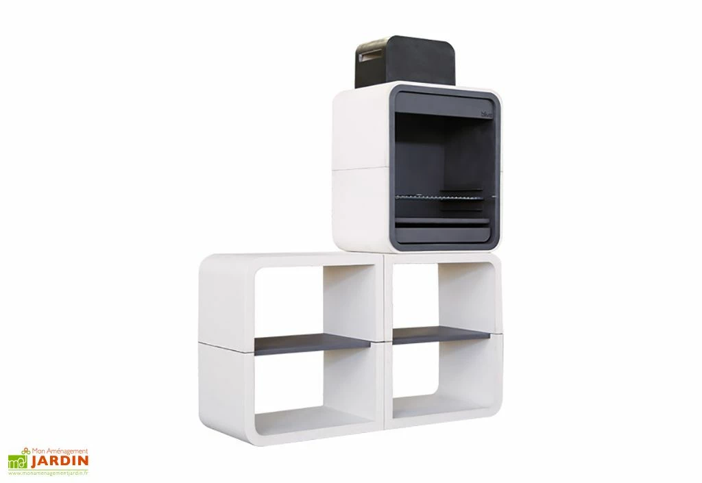 Ce barbecue en béton de chez Blive est composé de trois modules à assembler par vos soins. A la fois moderne et robuste, il est fabriqué à partir de béton fibré hydrofuge, un matériau qui lui permet de résister à l’humidité, au gel et aux agressions extérieures en tous genres sans pour autant nécessiter d’entretien particulier. L’intérieur du foyer du barbecue est pour sa part revêtu de métal traité contre la corrosion et recouvert d’une peinture thermorésistante, ce qui lui assure une grande tolérance aux températures extrêmes.