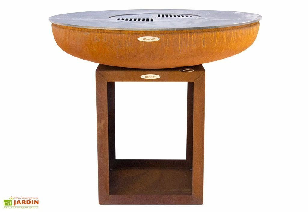 Le braséro de jardin Carus L de chez Remundi est un braséro qui mixe l’acier ayant reçu une transformation suite au processus de corrosion naturelle et l’acier inoxydable qui ne craint pas la corrosion. Fabriqué artisanalement la rouille n’altère pas du tout sa solidité.