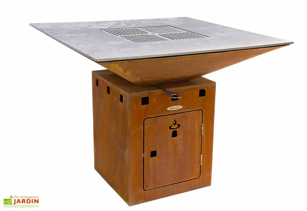 Le braséro Cube L de chez Remundi est un grand braséro de jardin idéal pour les flambées des longues soirées d’été et pour les barbecues grâce à sa plaque de cuisson incluse. Il mélange l’acier oxydé pour le corps et l’inox pour les parties en contact avec les aliments : la grille et la plaque de cuisson.