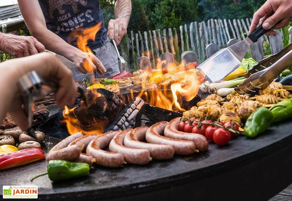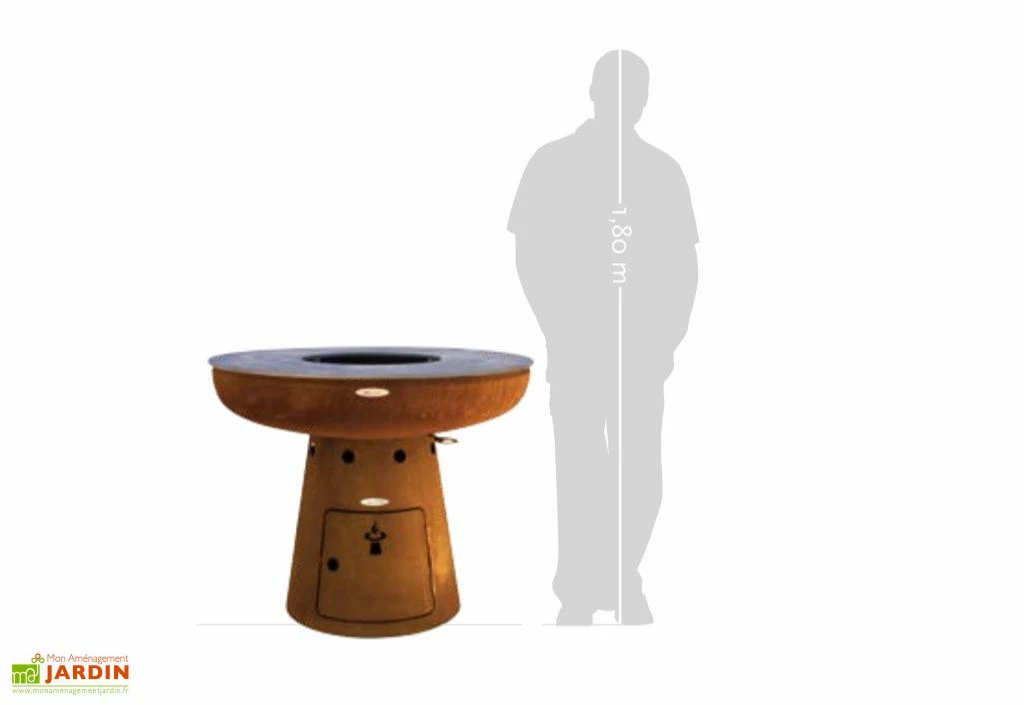Le braséro de jardin est à la fois un chauffage extérieur et un véritable barbecue. Il vous permet de profiter de la chaleur d’un bon feu de bois pendant les soirées fraiches de la fin du printemps ou du début de l’automne et ainsi de faire durer la saison. Sa grande table de cuisson vous permet également de faire griller viandes et légumes façon plancha.