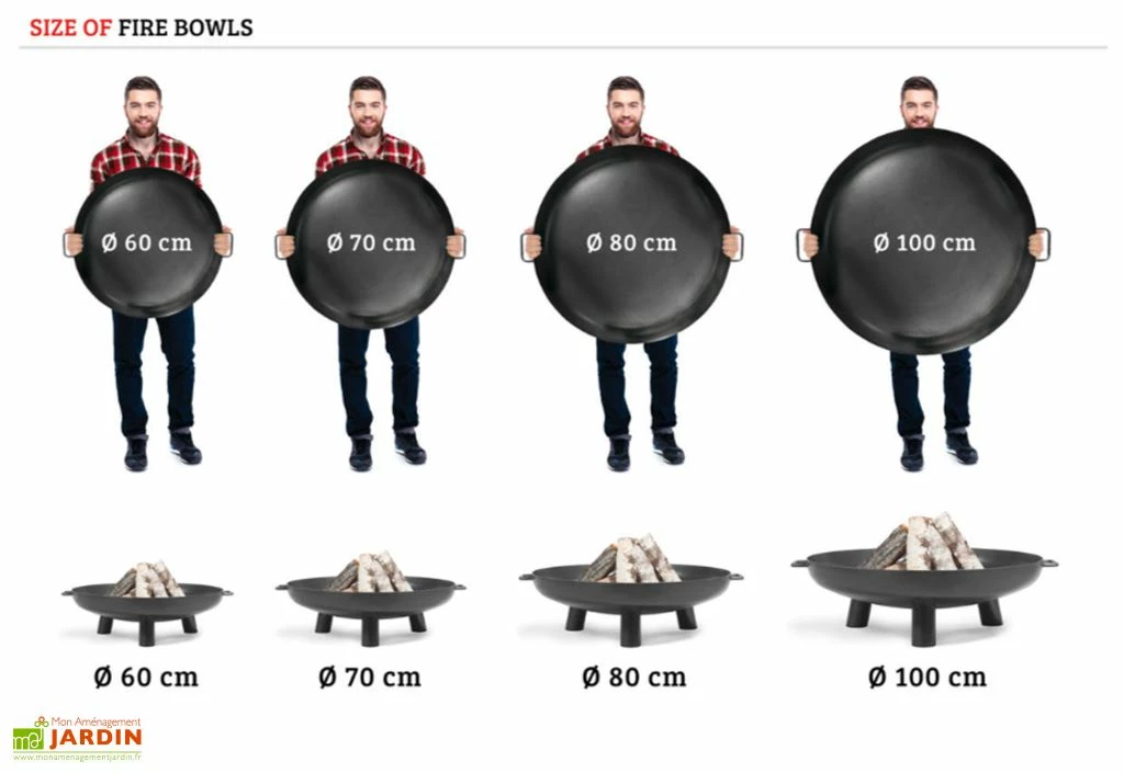 Le braséro est disponible en version 60 cm avec sa grille de cuisson de 44 x 44 cm ou en version 70 cm de diamètre avec sa grille de 50 x 50 cm. Il mesure 45 cm de hauteur et il est équipé d’un bûcher, idéal pour stocker votre bois et en avoir toujours à disposition pour l’alimenter.