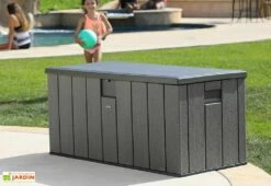 Coffre De Rangement Extérieur En Résine 880 L Avec Couvercle Sur Vérins