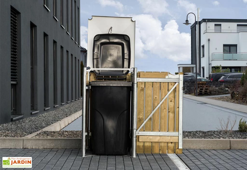 Ce cache-poubelle simple de la marque Hide mesure 69,7 x 80,7 cm pour 115,2 cm de haut, ce qui lui permet d’accueillir un conteneur de 240 L. Il dispose de parois en bois disponibles dans une finition naturelle ou de couleur grise, au choix. Idéal pour protéger votre benne des intempéries tout en la plaçant hors de vue, ce cache-poubelle en bois est équipé d’un couvercle et d’une porte frontale permettant de remplir et de sortir facilement votre poubelle.