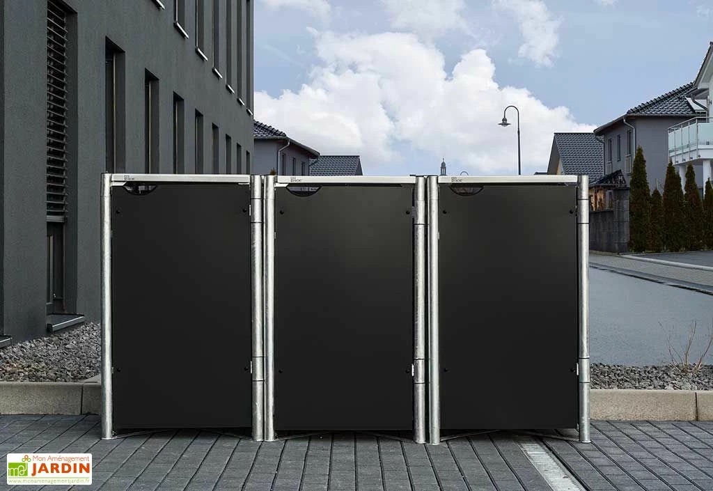 Parfait pour placer vos poubelles hors de vue tout en les protégeant des intempéries ou des animaux, ce cache-poubelle triple Hide est conçu pour loger trois conteneurs de 140 L. Il mesure en effet 181,2 x 63,4 cm, pour 115,2 cm de haut, et possède des portes frontales et des couvercles permettant de remplir et de sortir aisément vos bennes. Afin de faciliter son intégration dans votre extérieur, ce cache-poubelle est disponible en noir ou en gris.