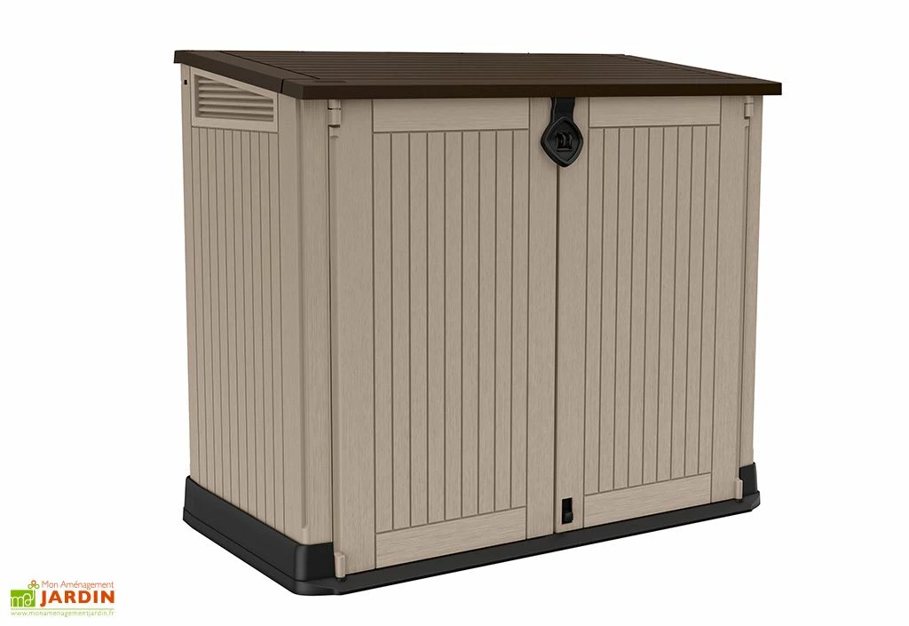 Ce coffre de jardin Chalêt-Jardin est extrêmement polyvalent. Son design et sa capacité de 880 L lui permettent en effet de contenir toutes sortes d’équipements comme du matériel de bricolage ou des outils de jardinage mais aussi du petit mobilier de jardin, par exemple. Il pourra également faire office d’abri à poubelles grâce à la présence d’une double porte frontale de 108 x 102 cm et à son couvercle pensés pour faciliter la manipulation et le remplissage des bennes.