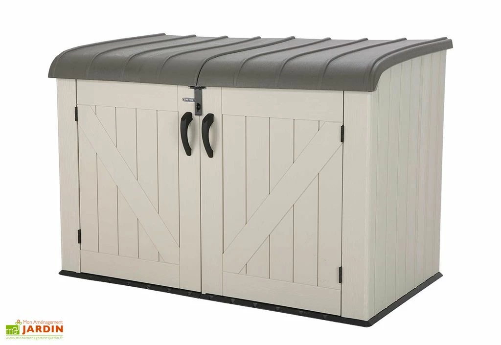 Le coffre de rangement mesure 107 cm de profondeur, 191 cm de largeur et 132 cm de hauteur. Les dimensions intérieures sont de : 180.9 x 97.8 x 118.7 cm. Il est en polyéthylène haute densité, un matériau qui résiste parfaitement à la moisissure, à la corrosion, aux attaques d’insectes et aux chocs. Il ne demande aucun entretien. Il peut contenir jusqu’à 2 124 litres. Idéal pour les vélos, le bois, les poubelles ou les équipements de jardin.