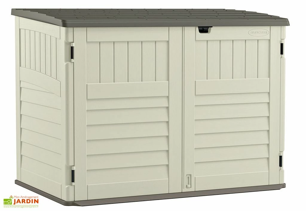 Le coffre de rangement Suncast Stowaway est en polyéthylène haute densité, un matériau résistant et qui ne demande aucun entretien. Le coffre mesure 1,12 m de profondeur, 1,79 m de largeur et 1,32 m de hauteur. Il est parfait pour le rangement de vélos d’enfants, pour cacher vos poubelles de ville ou pour stocker vos équipements de jardin. L’ouverture se fait par le haut et par la façade. Les dimensions intérieures sont de 166 x 98 x 125 cm (l,l,h). L’ouverture du couvercle est facilitée par 2 vérins à gaz.