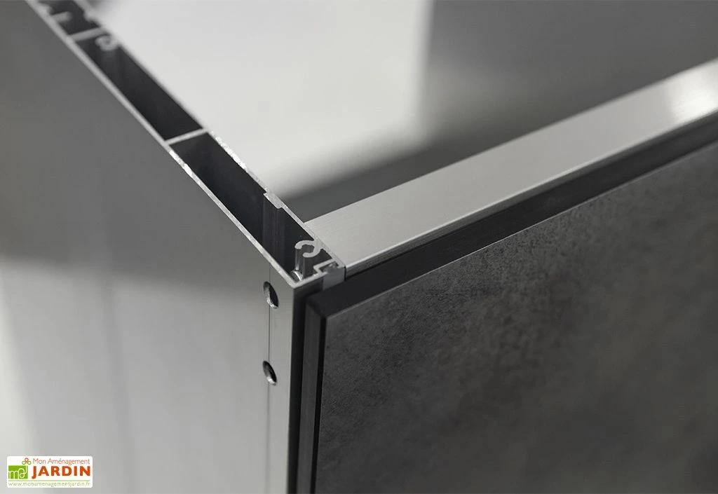 Les 3 joues latérales de 10 mm d’épaisseur assurent une finition parfaite à cette cuisine d’extérieur. Celle sur la droite mesure 61,5 x 88 cm (p,h) et la deuxième sur le côté gauche affiche des dimensions de 61,5 x 68 cm (p,h). Enfin, la joue centrale mesure 61,5 x 20 cm (p,h), et vient embellir votre espace pour plancha.