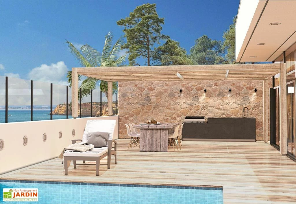 Cette cuisine d’été possède de nombreux rangements avec 3 meubles bas et 1 grand tiroir :