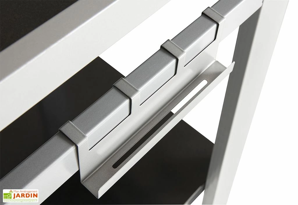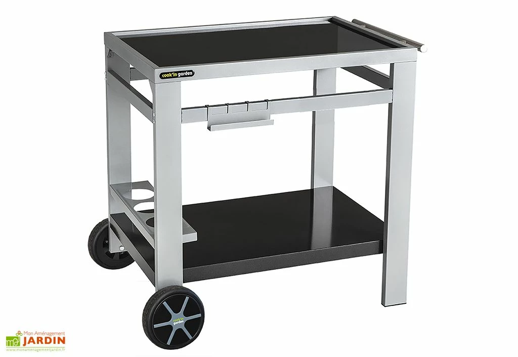 La desserte de chez Cook’in Garden est un meuble d’appoint à installer dans votre jardin. Il vous sert de plan de travail, de rangement ou de table pour poser votre plancha électrique ou à gaz. La surface de travail de la desserte est de 80 cm de longueur et 55 cm de largeur.