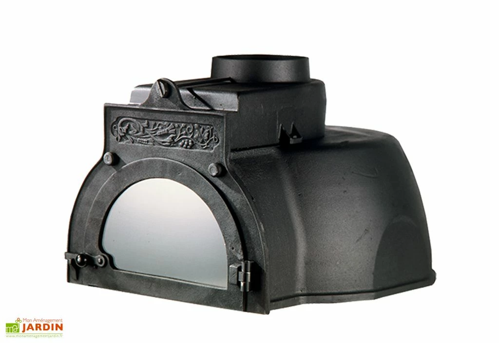 Ce four à pizza extérieur est entièrement fabriqué en fonte monocoque, cette dernière étant recouverte d’une peinture noire haute température chargée d’accroître sa résistance face à la chaleur. Il est doté d’une porte de 44 cm de large dont la vitre vous permettra de surveiller les aliments en cuisson. Cette vitre pourra résister à une chaleur maximale de 700° C. Le four dans son ensemble mesure 55 cm de large sur 60 cm de profondeur et 38 cm de haut. Il est livré sans conduit de cheminée, ce qui signifie qu’il vous faudra en prévoir un afin d’assurer la bonne évacuation des fumées (diamètre du conduit : 18 cm).