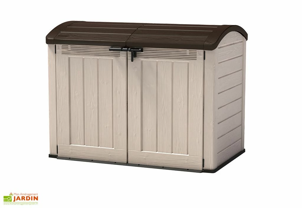Le coffret dispose d’un plancher, d’une porte verrouillable (cadenas non inclus) et d’une facilité d’ouverture grâce à des pistons. Le coffre est de coloris beige et marron clair et a une aération.