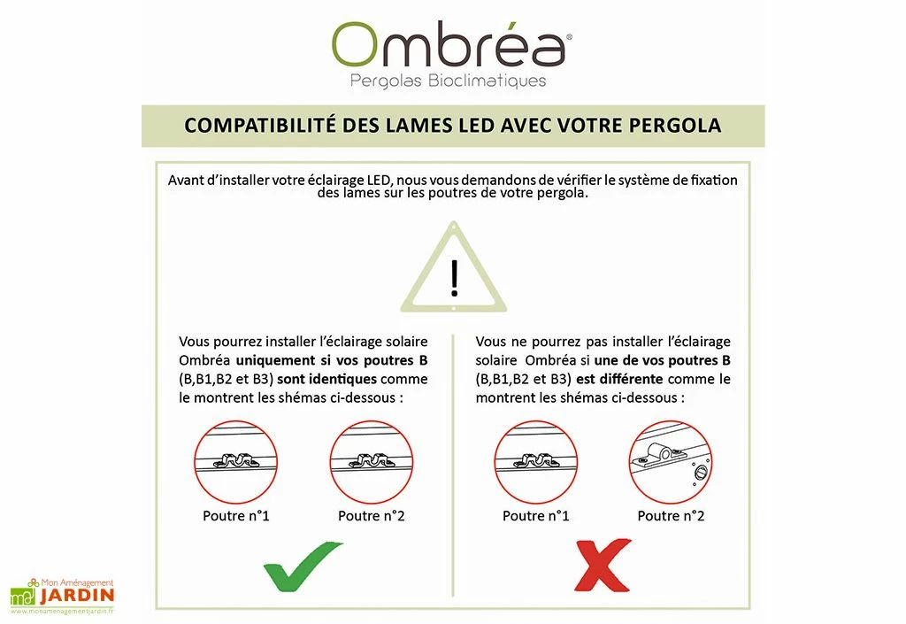 Voici la liste des pergolas Ombréa pouvant accueillir ce kit :