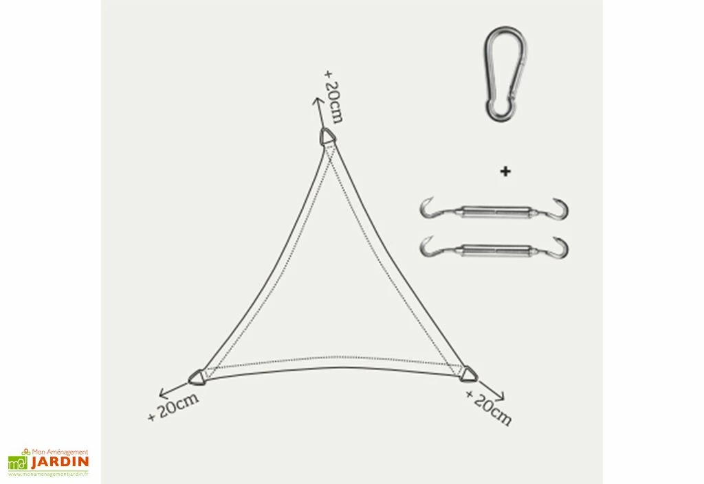 La toile tendue de jardin est équipée de trois anneaux en acier inoxydable sur les angles. Ils permettent d’installer facilement le voile d’ombrage à l’aide de fixations. Ces derniers ne sont pas fournies mais ils sont disponibles dans l’onglet « accessoires ». Ces fixations, eux aussi en acier inoxydable, vont assurer une fixation optimale de votre voile d’ombrage.