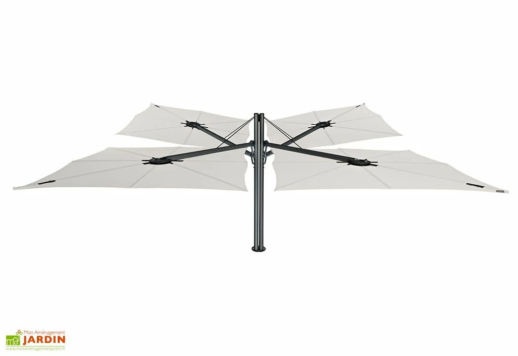 Le parasol Spectra Multi proposé par Umbrosa est fabriqué en Belgique dans des matériaux vous offrant un produit durable et résistant. Ce parasol déporté compte 4 toiles de 250 cm de côté offrant une grande surface d’ombre. Il est idéal pour les grandes terrasses de particuliers ou pour les bars et restaurants de professionnels.