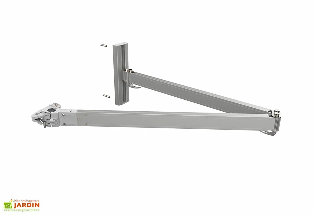 Le bras de parasol est en aluminium anodisé, il ne craint pas la corrosion et ne vous demande pas d’entretien particulier. Le bras articulé vous permet de déplacer facilement la tête de parasol pour vous protéger du soleil toute la journée. Un bouton vous permet d’incliner la tête de parasol pour une protection totale. Ce bras dispose d’un profilé mural de 34 cm et de boulons pour la fixation au mur.