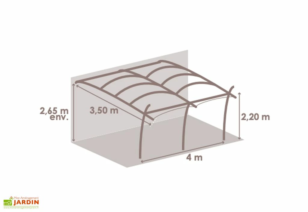 Les dimensions de 3,5 x 4 m de la pergola adossée laissent place à 14 m² à aménager en salle à manger ou en salon de jardin. Vous pourrez apporter de la décoration telle que des guirlandes lumineuses ou des plantes grimpantes à enrouler autour des poteaux pour un résultat très cosy et chaleureux.