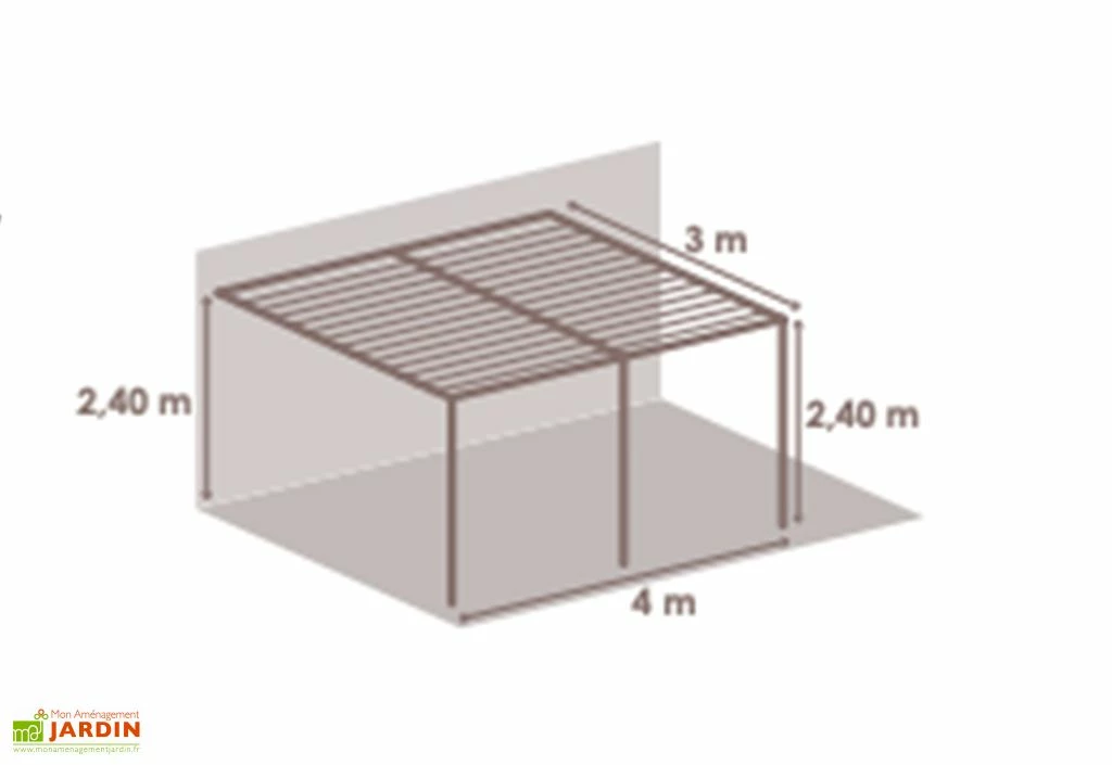 Avec ses 3 x 4 m de dimensions, la pergola aluminium offre 12 m² qu’il serait idéal d’aménager en petit salon de jardin pour se réunir en famille.