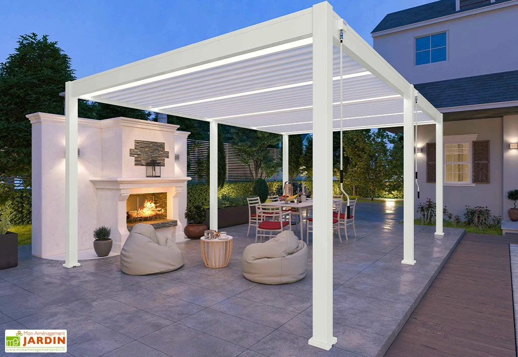 Prévue pour résister aux conditions climatiques, cette pergola bioclimatique résiste à des vents jusqu’à 100 km/h et à une charge de neige jusqu’à 50 kg/m². Lorsqu’il neige abondamment, pensez à ouvrir les lames pour éviter le risque de surcharge.