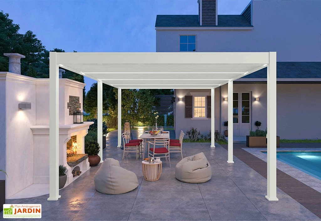 Cette pergola bioclimatique est fabriquée entièrement en aluminium : de la structure aux lames orientables. Elle ne craint pas la corrosion et ne vous demandera donc aucun entretien. L’aluminium est recouvert d’un thermolaquage blanc RAL 9016 offrant une belle finition à l’ensemble. Sa structure comprend 6 poteaux de 11,6 x 11,6 cm et des poutres de 19,5 x 7,5 cm. L’aluminium possède une épaisseur de 1,4 à 1,8 mm en fonction des pièces.