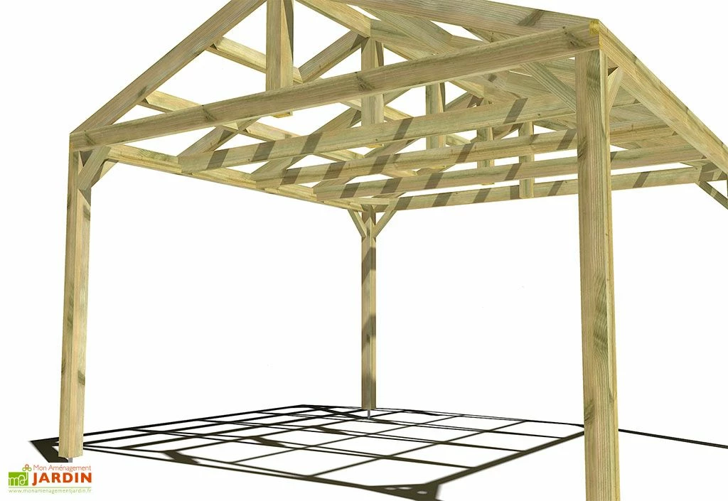 La pergola en bois Ma Pergola Bois est l’abri qu’il vous faut pour organiser un espace de rangement ou un espace de vie dans votre jardin. Ses deux pentes lui permettent une vaste hauteur de plafond. Cette pergola autoportée est conçue en bois de pin sylvestre. Ce bois bénéficie d’un traitement autoclave classe 4 afin de le protéger contre les insectes, les champignons et autres agressions extérieures et ainsi assurer sa durabilité dans le temps.