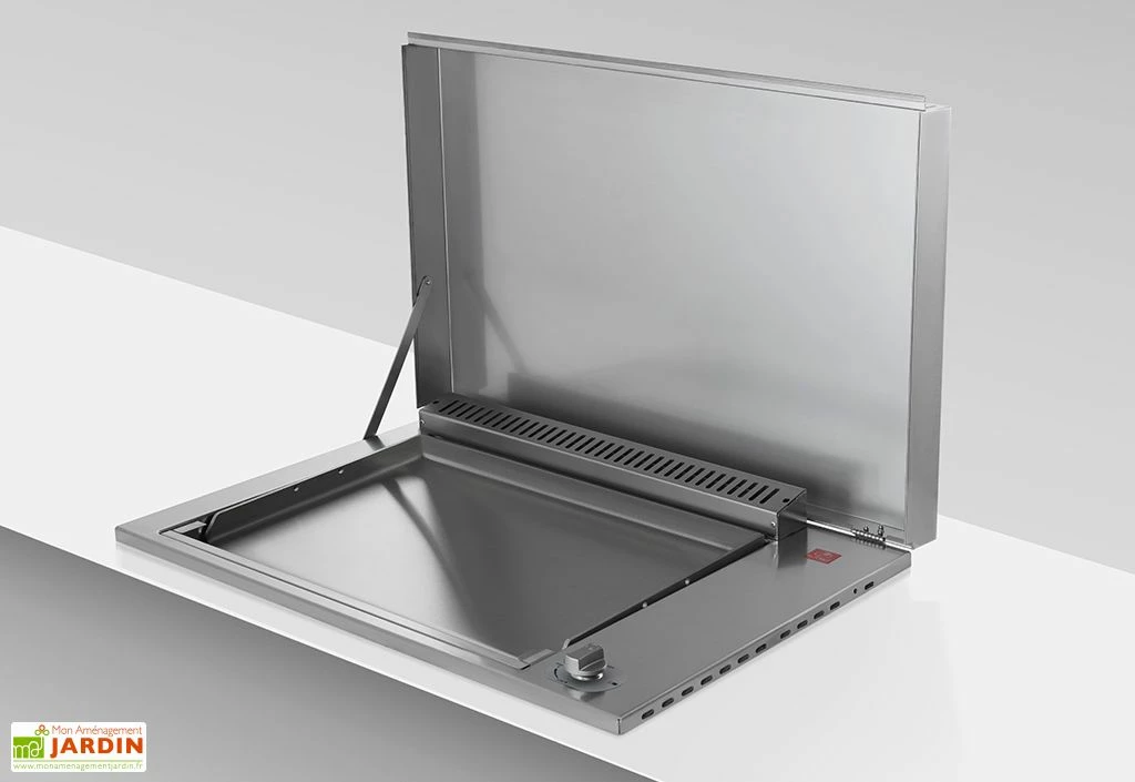 La plancha encastrable OASI 80 de PlaNet faite en inox 304 permet de cuire les aliments sans risque pour la santé ni de modification du goût. La taille de la plancha est la suivante : 103 x 56 x 20 cm. Afin d’encastrer la plancha, il faut une découpe selon ces dimensions : 100 x 53 x 38 cm.