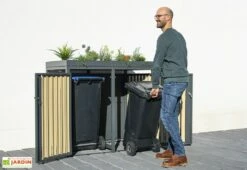 Cache Poubelle Extérieur Double Acier Imitation Bois – 2x 240 Litres