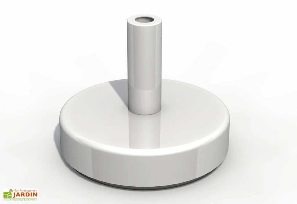 Le socle pour parasol de chez Prostor permet de maintenir le Parasol Rond Mât Central Aluminium Toile Oléfine Ø 2,70 m de Prostor. Il est en aluminium et pèse 25 kg une fois rempli. Le socle est à remplir de sable pour un maintien parfait. Il mesure 46 cm de diamètre. Attention, vous devez le commander en même temps que le parasol Prostor.