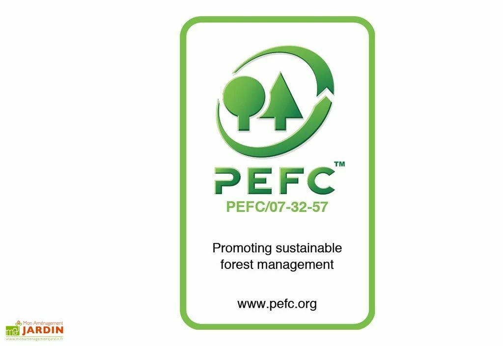 Le bois est issu de forêts d’Europe gérées de manière durable puisqu’il est certifié des labels FSC C009853 et PEFC 07-32-57 pour le respect de l’environnement. La surface à peindre de l’abri s’élève à 22,38 m².