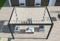 - Pour les pergolas adossées, le rideau ne pourra pas être installé sur le côté puisqu’il ne peut pas se fixer contre le mur de votre maison.