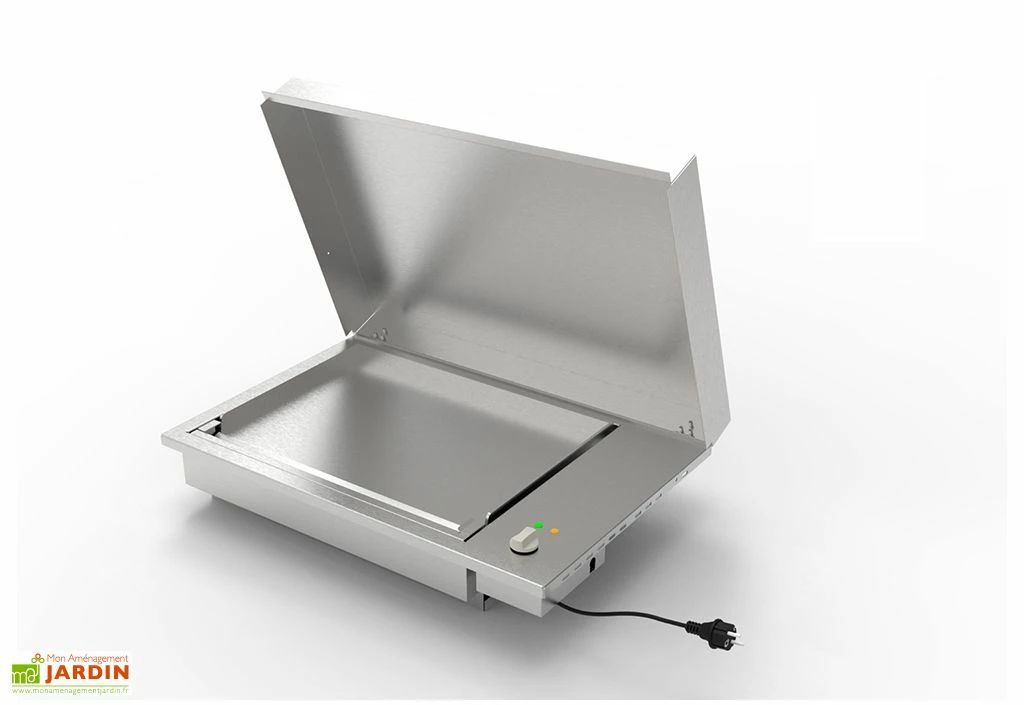 La plancha électrique de 230 V est dotée d’une plaque de cuisson de 60 x 40 cm avec une puissance de 2 400 W. Un bac à graisse incliné et amovible est intégré sur la façade, pour une vidange plus facile. La plaque à induction d’une puissance de 3 700 W dispose d’un double foyer et affiche des dimensions de 56 x 59 cm. Des couvercles en inox peuvent recouvrir les équipements électriques lorsqu’ils ne sont pas utilisés et peuvent facilement être retirés.